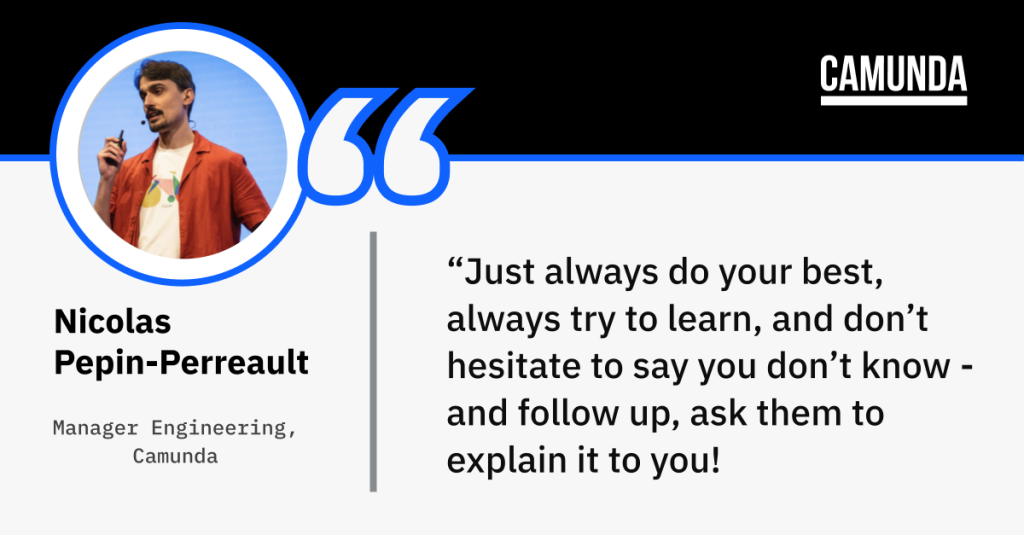 What’s one piece of advice you’d share with someone considering an engineering role at Camunda, especially someone earlier in their career?