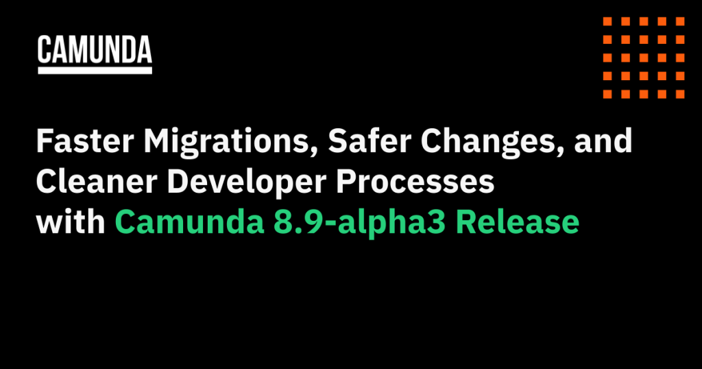 In January, Camunda released Camunda 8.9-alpha3, and we have some highlights to share about that release. For a list of all items included in the release, we encourage you to check out our release notes.