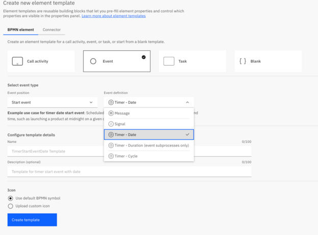 It is common when creating process models across environments to use the same timer settings. With this release, you can now create, discover, and apply templates for timer events directly in Web Modeler.