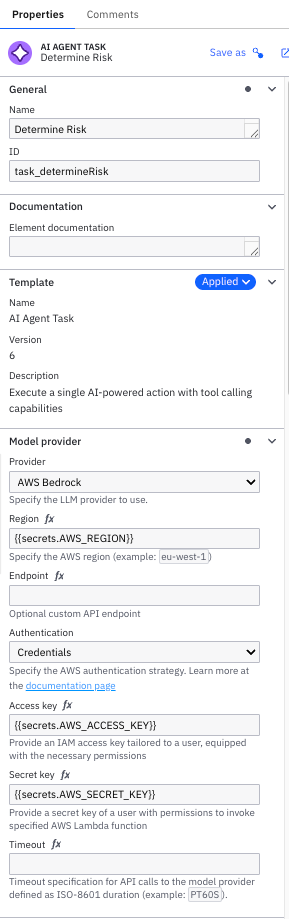 Here’s the details on our BPMN properties for this agent.