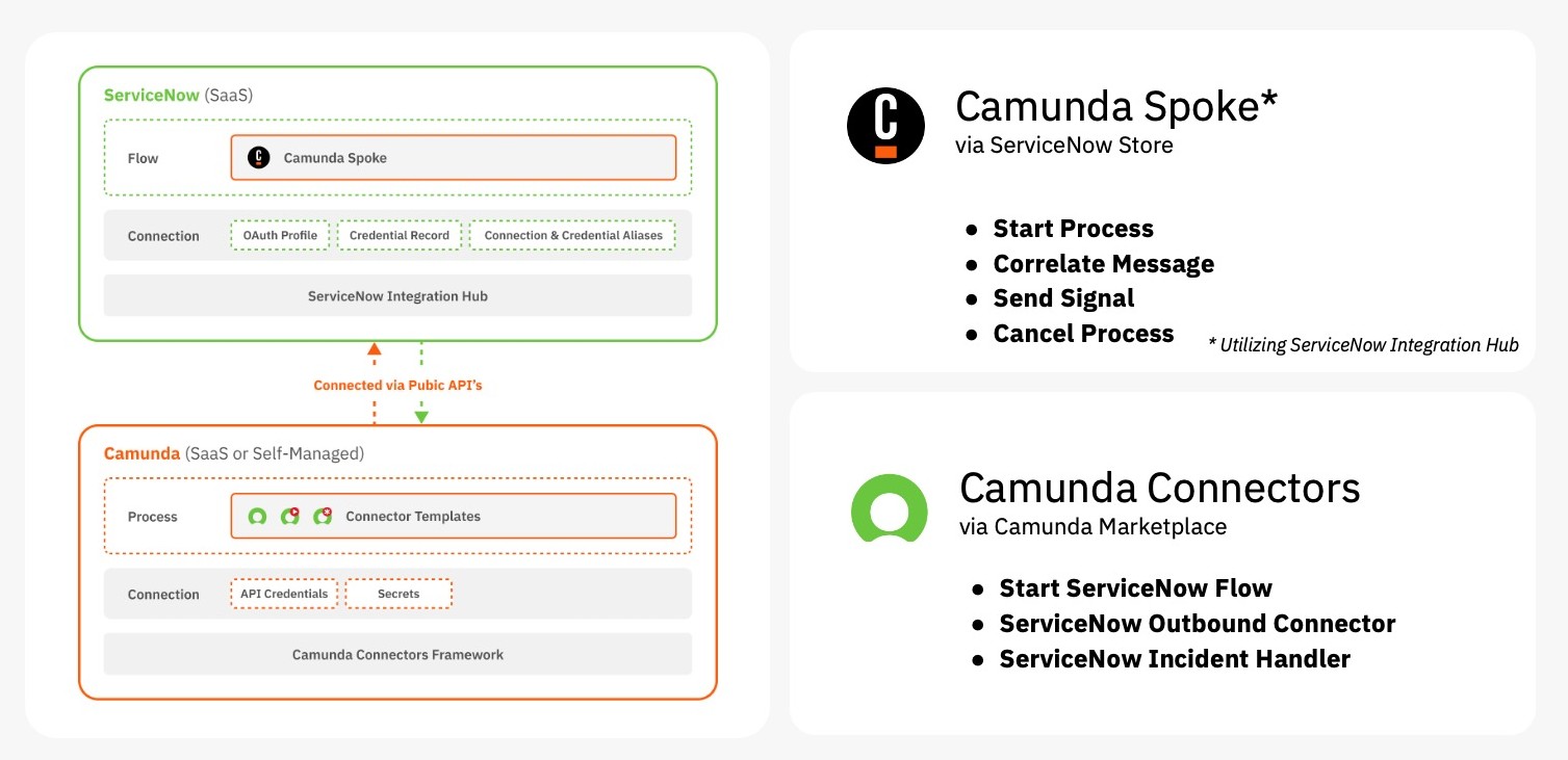 Maintain ServiceNow as System of Record. Orchestrate with Camunda.